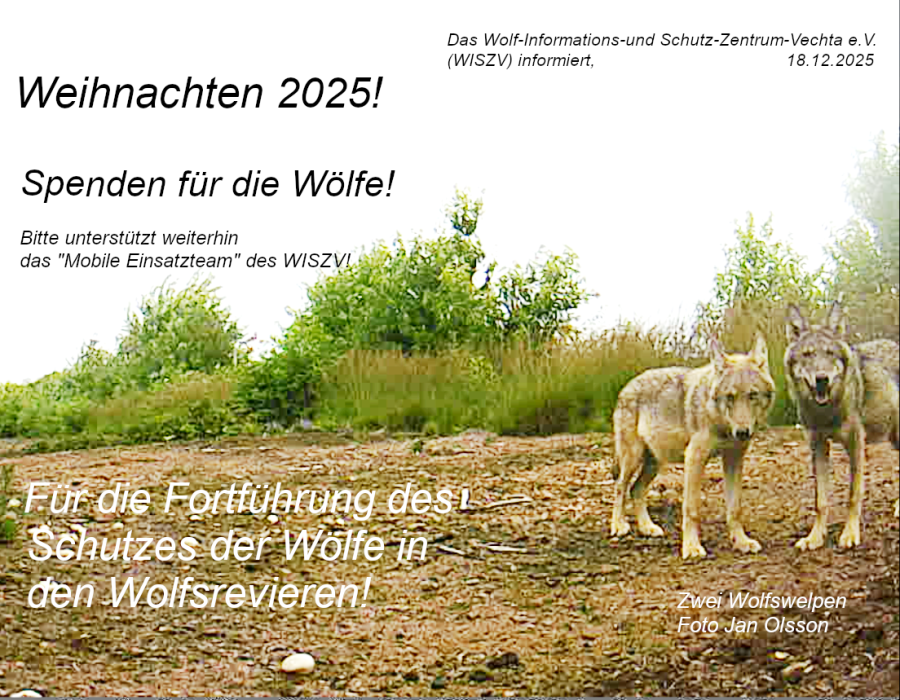 Weihnachten 2025 - Spenden für die Wölfe - Fortführung des Schutzes der Wölfe in den Wolfsrevieren!