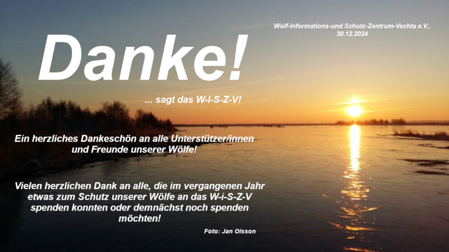 Das W-I-S-Z-V sagt Danke für Eure/Ihre Unterstützung des Wolfes!